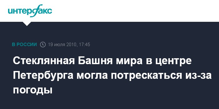 Санкт-Петербург. 19 июля. INTERFAX.RU - Стекло на Башне мира, установленной на Сенной площади Петербурга, дало трещины из-за высокой температуры воздуха в городе, сообщили "Интерфаксу" в ГУП "Ленсвет" в понедельник. "Из-за жарких дней, высоких температур стекло с одной стороны дало трещины, ведь стекло, как и всякий твердый материал, в тепле расширяется. Скорее всего, при монтаже были неверно рассчитаны тепловые зазоры", - выразил мнение собеседник. Он отметил, что повреждения на Башне мира некритичные, трещины появились на одном из слоев материала. "Стекло там - аналог лобового стекла на автомобилях. Два слоя остались целыми", - подчеркнул собеседник.