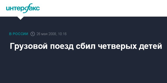 Шымкент. 26 мая. INTERFAX.RU - На станции Кызылсай под Шымкентом (адмцентр Южно-Казахстанской области) грузовой поезд сбил четверых детей. Трое мальчиков погибли на месте, один в тяжелом состоянии доставлен в больницу.