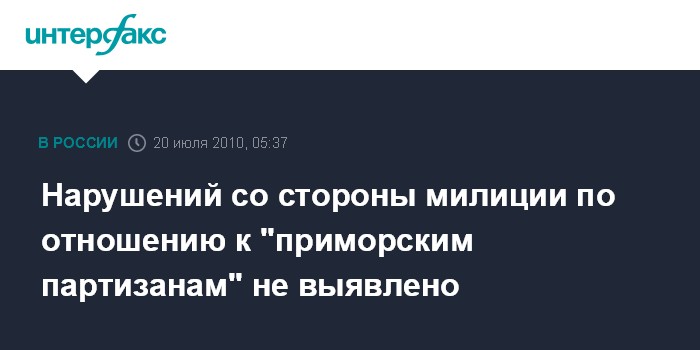 Нарушений со стороны милиции по отношению к "приморским партизанам" не выявлено