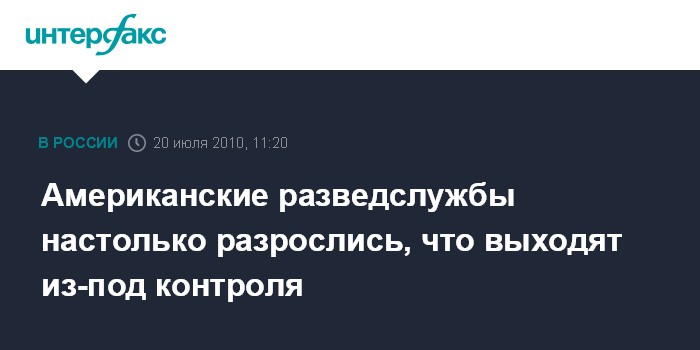 Москва. 20 июля. INTERFAX.RU - Структура разведывательных служб США за последние годы стала настолько громоздкой, что контролировать их работу становится практически невозможным, пишет газета "Вашингтон пост".