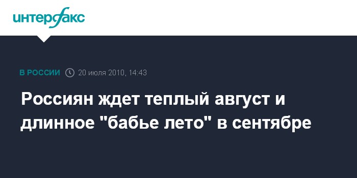 Москва. 20 июля. INTERFAX.RU - Температурный режим в августе в центре европейской части России ожидается около и выше нормы, сообщил глава Росгидромета Александр Фролов. "Август у нас ожидается умеренно теплым, то есть в среднем температура будет около и чуть выше нормы", - сказал Фролов на пресс-конференции во вторник. По его словам, средняя дневная температура в августе будет около 20-25 градусов. Этот месяц также будет достаточно сухим, отметил глава Росгидромета.