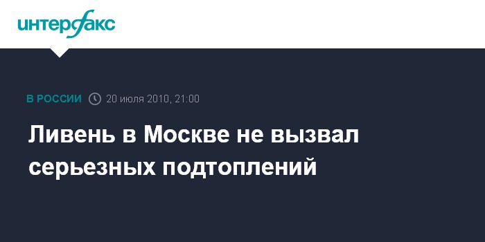 Москва. 20 июля. INTERFAX.RU - Коммунальные службы Москвы ликвидируют подтопления, возникшие в результате прошедшего во вторник вечером ливневого дождя со шквалистым ветром на юге, юго-востоке и востоке столицы, сообщил "Интерфаксу" пресс-секретарь ГУП "Мосводосток" Игорь Епифанов во вторник.