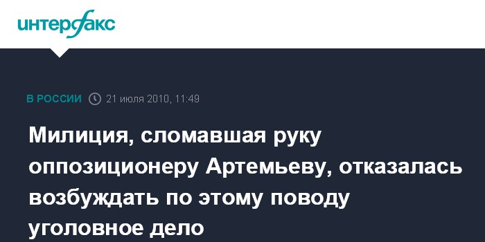 Милиция, сломавшая руку оппозиционеру Артемьеву, отказалась возбуждать по этому поводу уголовное дело