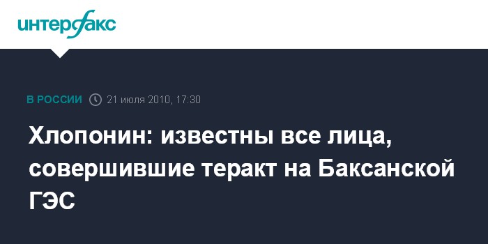 Хлопонин: известны все лица, совершившие теракт на Баксанской ГЭС