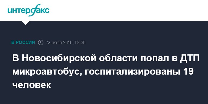 Москва. 22 июля. INTERFAX.RU – 19 человек получили травмы в результате столкновения в Черепановском районе Новосибирской области микроавтобуса Ford, в котором ехали жители Томской области, и легкового автомобиля Mercedes.