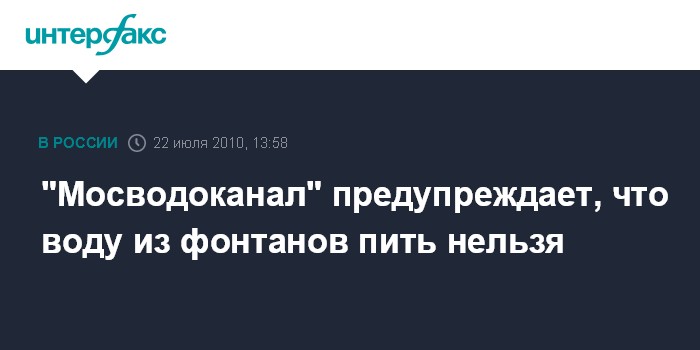 Москва. 22 июля. INTERFAX.RU - Генеральный директор "Мосводоканала" Станислав Храменков предостерег от питья воды из фонтанов.