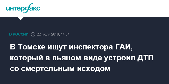 Томск. 22 июля. INTERFAX.RU - Следственный отдел по городу Томску СКП РФ возбудил уголовное дело в отношении инспектора ГИБДД Ильи Евсеева, подозреваемого в совершении ДТП, в результате которого погиб человек.