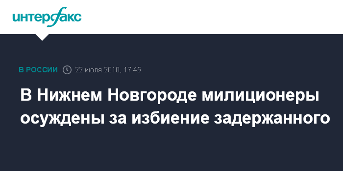 Нижний Новгород. 22 июля. INTERFAX.RU - В Нижнем Новгороде суд вынес приговор двум оперуполномоченным городской милиции, обвиняемым в избиении задержанного.