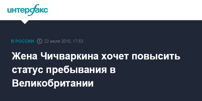 Москва. 22 июля. INTERFAX.RU - Жена основателя и бывшего совладельца "Евросети" Евгения Чичваркина пытается через различные инстанции добиться изменения статуса пребывания в Великобритании с "гостя" на "инвестиционного мигранта".