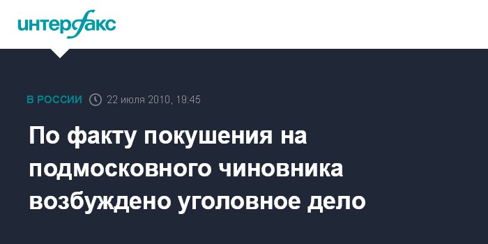 По факту покушения на подмосковного чиновника возбуждено уголовное дело
