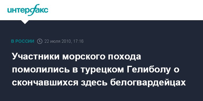Гелиболу (Турция). 22 июля. INTERFAX.RU - Краткая заупокойная служба была совершена в четверг у мемориального комплекса в честь членов армейского корпуса генерала Кутепова в турецком городе Гелиболу (бывшем Галлиполи).