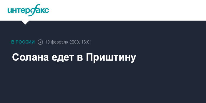 Как ожидается, Х.Солана пробудет в Косово всего несколько часов. Речь идет о первом визите высокопоставленного иностранного чиновника в Приштину с момента одностороннего провозглашения независимости Косово.
