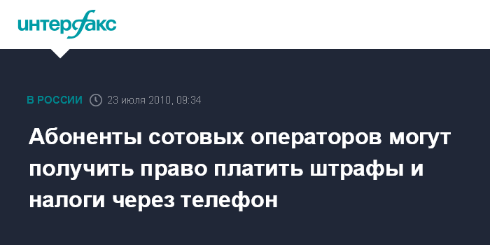 Абоненты сотовых операторов могут получить право платить штрафы и налоги через телефон