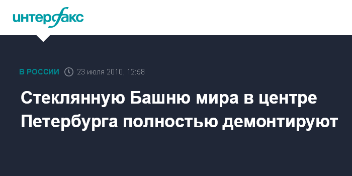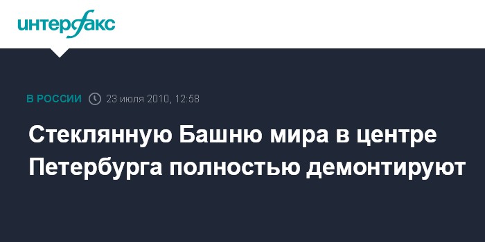 Стеклянную Башню мира в центре Петербурга полностью демонтируют