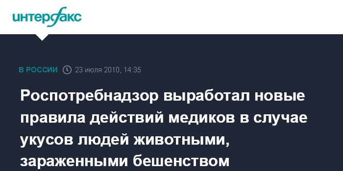 Москва. 23 июля. INTERFAX.RU - Медработнику, обнаружившему бешенство или подозрение на данное заболевание у человека, необходимо не только собрать эпидемиологический анамнез больного, но и установить все сведения о напавшем на него животном, сказано в новых правилах Роспотребнадзора.
