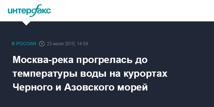 Москва. 23 июля. INTERFAX.RU - По данным Гидрометцентра, вода в Москве-реке прогрелась почти до уровня черноморского курорта. Согласно информации, опубликованной в пятницу на сайте ведомства, температура воды в Москве-реке у Звенигорода за прошедшие сутки составила +24,6 градуса. Между тем температура поверхности воды Черного и Азовского морей находилась в диапазоне +24,5+26,5 градусов.