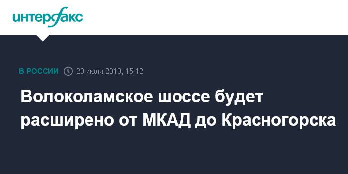 Волоколамское шоссе будет расширено от МКАД до Красногорска
