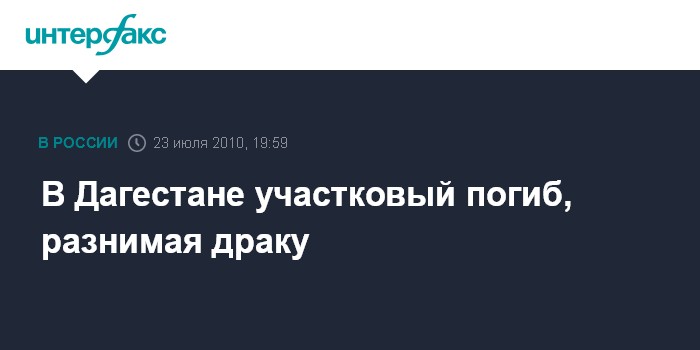 Махачкала. 23 июля. INTERFAX.RU - Участковый милиционер, пытавшийся пресечь массовую драку, погиб в пятницу в Макарамкентском районе Дагестана, сообщили "Интерфаксу" в пресс-службе МВД республики.