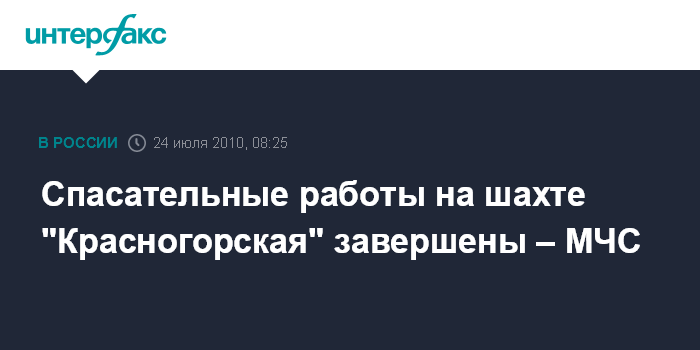 Москва. 24 июля. INTERFAX.RU - В городе Прокопьевске Кемеровской области на шахте "Красногорская" спасатели завершили спасательные работы, сообщает пресс-служба Главного управления МЧС России по Кемеровской области.