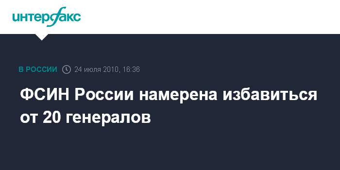 ФСИН России намерена избавиться от 20 генералов