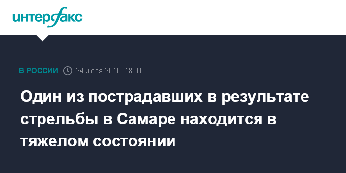 Самара. 24 июля. INTERFAX.RU - Трое пострадавших в результате стрельбы на рынке в Самаре отпущены домой, еще один после операции находится в тяжелом состоянии, сообщили агентству "Интерфаксу" в Центре медицины катастроф по Самарской области.