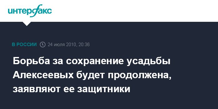 Москва. 24 июля. ИНТЕРФАКС - Защитники усадьбы Алексеевых намерены продолжить борьбу за здания в воскресенье, сообщил один из организаторов акции Артем Хромов.