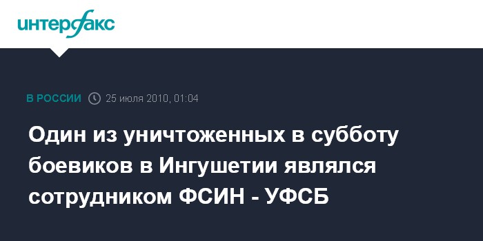 Один из уничтоженных в субботу боевиков в Ингушетии являлся сотрудником ФСИН - УФСБ