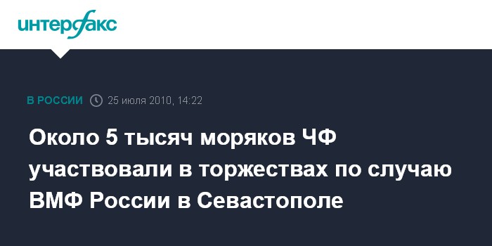 Севастополь. 25 июля. INTERFAX.RU - В Севастополе по случаю Дня Военно-морского флота России состоялся парад кораблей Черноморского флота РФ. В строю кораблей находился и флагман украинских Военно-морских сил фрегат "Гетман Сагайдачный". Затем прошел военно-спортивный праздник. В частности, состоялось прохождение кораблей с государственными флагами РФ и Украины, военно-морскими флагами Советского Союза. Зрителям продемонстрировали возможности кораблей и вооружений флота.