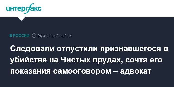 Следовали отпустили признавшегося в убийстве на Чистых прудах, сочтя его показания самооговором – адвокат