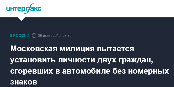 Московская милиция пытается установить личности двух граждан, сгоревших в автомобиле без номерных знаков