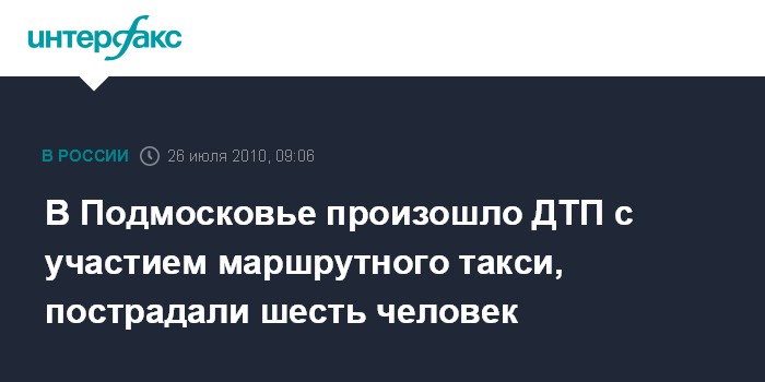 Москва. 26 июля. INTERFAX.RU - В Подмосковье опрокинулось маршрутное такси, шесть человек получили ранения, сообщили "Интерфаксу" в правоохранительных органах.
