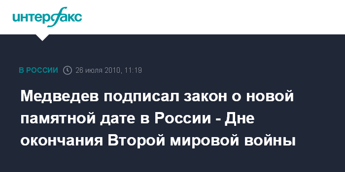 Медведев подписал закон о новой памятной дате в России - Дне окончания Второй мировой войны