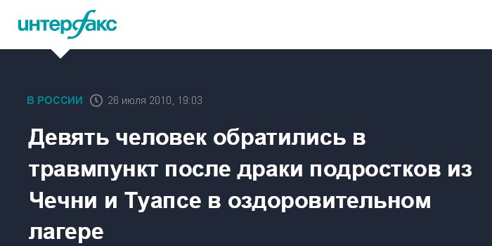 "По предварительным данным, конфликт произошел в воскресенье на бытовой почве. Поводом к драке стало недопонимание, возникшее в одном из спальных корпусов между 16-летней отдыхающей из Ростовской области и гостями лагеря - 14-15-летними подростками из Чечни, которые, по всей видимости, хотели с ней познакомиться", - сказал собеседник агентства.