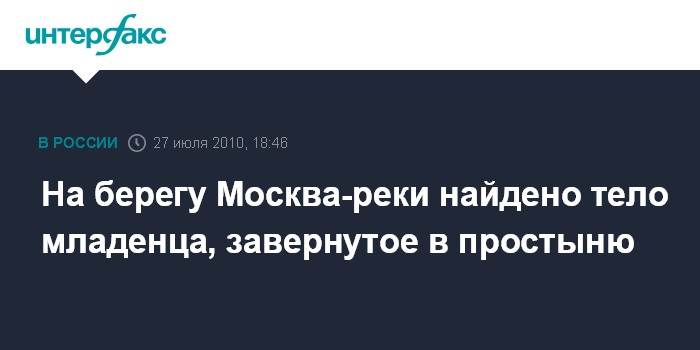 Москва. 27 июля. INTERFAX.RU - В столице на берегу Москвы-реки в районе Нагатинской поймы обнаружено тело недавно родившейся девочки, сообщил "Интерфаксу" источник в правоохранительных органах.