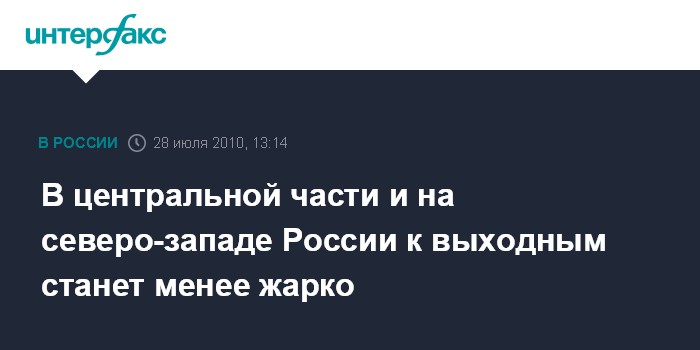 Москва. 28 июля. INTERFAX.RU - Жара спадет к концу рабочей недели в Центральном и Северо-Западном федеральных округах, прогнозирует Росгидромет.
