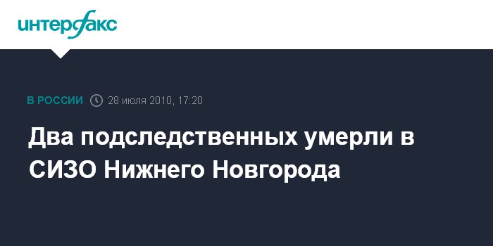 Москва. 28 июля. INTERFAX.RU - Органы СКП по Нижегородской области выясняют обстоятельства смерти двух человек, содержавшихся в одном из СИЗО Нижнего Новгорода, сообщили в СКП РФ.