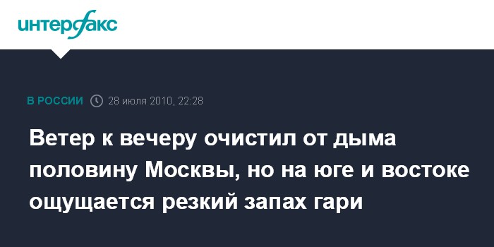 Ветер к вечеру очистил от дыма половину Москвы, но на юге и востоке ощущается резкий запах гари