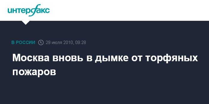 Москва. 29 июля. INTERFAX.RU - Москву утром в четверг снова заволокло дымом от торфяных пожаров в Подмосковье. Накануне вечером сизая дымка начала рассеиваться, вследствие чего стало легче дышать в центре Москвы, а также в северных и северо-западных районах города. Однако к утру четверга город, в том числе центральную его часть, снова накрыл густой смог. На улицах, в наземном общественном транспорте и даже в метро ощущается резкий запах гари.