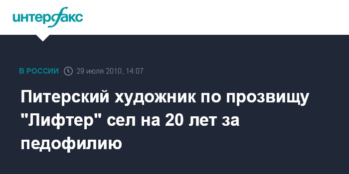 В Петербурге с 2001 по 2007 г. неизвестный на тот момент человек совершил ряд преступлений сексуального характера в отношении детей в возрасте от 7 до 12 лет, которые вызвали большой общественный резонанс, а в СМИ появились материалы о том, что в городе орудует маньяк по прозвищу "Лифтер".