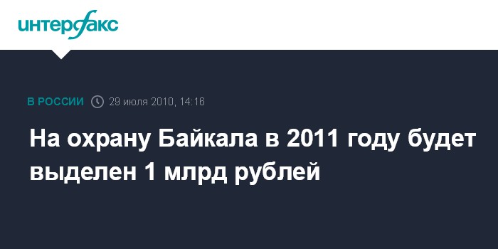Москва. 29 июля. INTERFAX.RU - Премьер-министр РФ Владимир Путин сообщил, что на охрану озера Байкал правительство в 2011 г. намерено выделить 1 млрд руб.