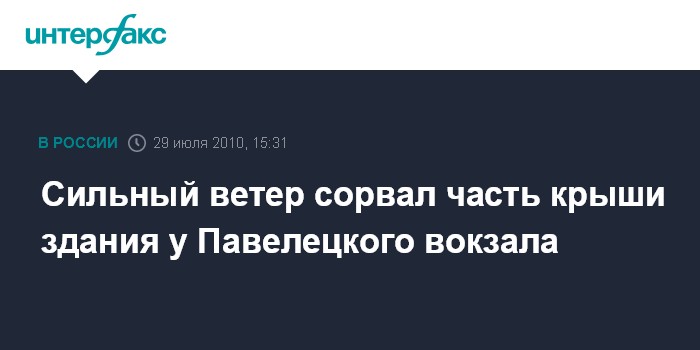 Москва. 29 июля. INTERFAX.RU - В Москве порыв ветра оторвал в четверг днем кусок кровли здания, расположенного у Павелецкого вокзала, сообщил "Интерфаксу" источник в правоохранительных органах города. "Около 15:00 сильный порыв ветра сорвал с креплений фрагмент кровли площадью примерно 7-10 кв. метров", - рассказал собеседник агентства. Он отметил, что сорванные кровельные листы в настоящее время свисают с крыши. Прибывшие на место происшествия сотрудники милиции оцепили место происшествия в целях безопасности.