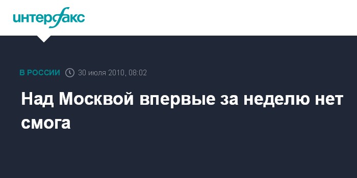 Москва. 30 июля. INTERFAX.RU - В Москве впервые за пять дней, в утренние часы относительно чистый воздух и нет смога от лесных пожаров под Москвой. Как передал корреспондент "Интерфакса", дымка рассеялась над центральными, северными, северо-западными и северо-восточными районами города.