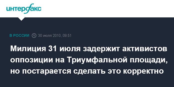 Милиция 31 июля задержит активистов оппозиции на Триумфальной площади, но постарается сделать это корректно