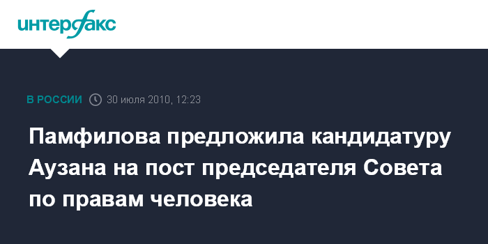 В свою очередь Памфилова подтвердила "Интерфаксу", что она рекомендовала Аузана на пост председателя Совета. "Я действительно рекомендовала А.Аузана в качестве своего преемника", - сказала она. Аузан со своей стороны отметил, что "это предложение теперь должно исходить из Кремля, пока никакого разговора об этом не было".