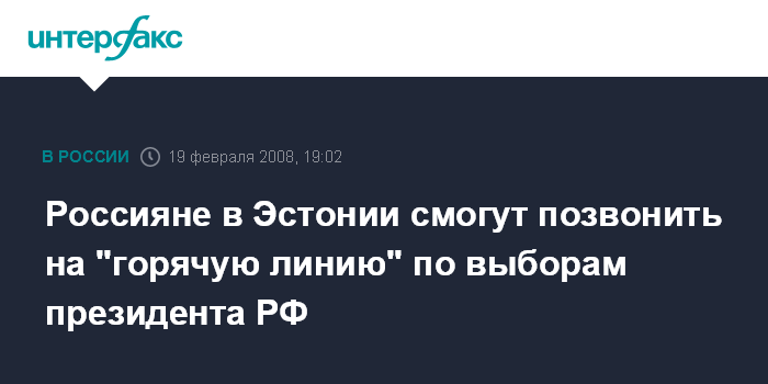 Таллин. 19 февраля. INTERFAX.RU - Посольство России в Таллине открыло "горячую линию" по вопросам проведения выборов президента РФ для российских граждан, проживающих или находящихся на территории Эстонской Республики.