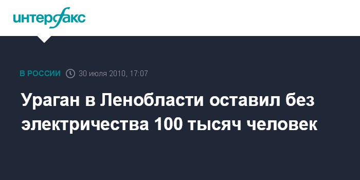 Cанкт-Петербург. 30 июля. INTERFAX.RU - В Ленинградской области в результате урагана без электричества остались около 132 тысяч человек, сообщает пресс-служба регионального МЧС.