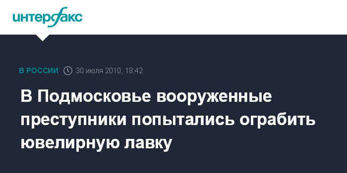 Москва. 30 июля. INTERFAX.RU - В Одинцовском районе Подмосковья в пятницу сотрудники милиции задержали вооруженных преступников, пытавшихся ограбить ювелирную лавку, сообщил "Интерфаксу" источник в правоохранительных органах.