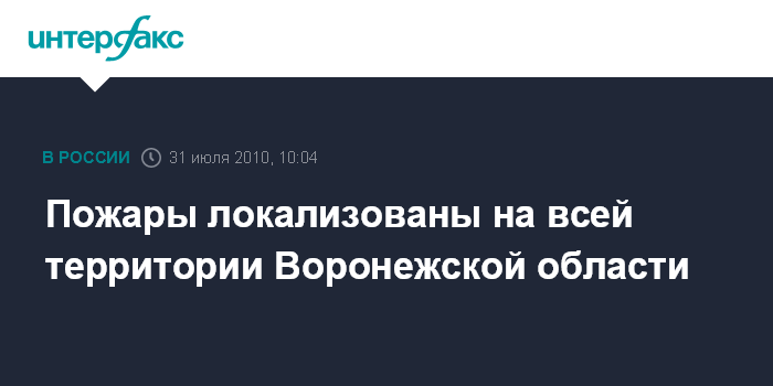 Воронеж. 31 июля. INTERFAX.RU - Во всех районах Воронежской области лесные пожары локализованы, сообщили "Интерфаксу" в субботу в пресс-службе главного управления МЧС области.