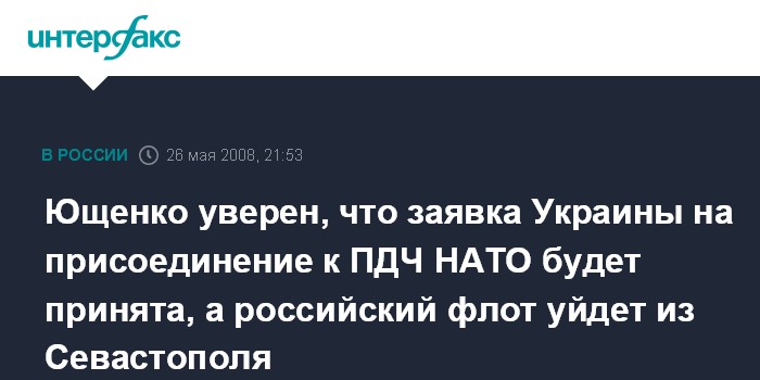 Ющенко уверен, что заявка Украины на присоединение к ПДЧ НАТО будет принята, а российский флот уйдет из Севастополя