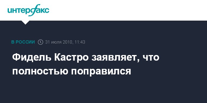 Гавана. 31 июля. INTERFAX.RU - Бывший кубинский лидер Фидель Кастро заявил, что преодолел мешавшие ему работать серьезные проблемы со здоровьем, сообщает в субботу агентство ЭФЭ.